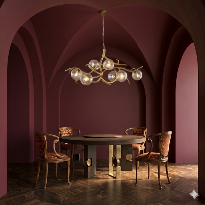 Crafted by Brand Van Egmond and curated by B. David Levine. Introducing the Ersa Oval Chandelier by Brand Van Egmond, a captivating homage to the Greek Goddess of dew. With a standard finish available in black matte, bronze, nickel, brass, brass burnished, nickel aged, and copper burnished, this exquisite fixture captures the essence of nature’s dew drops, shimmering in the morning light. Crafted with sinewy branches of metal and organic-shaped glass, this sculptural masterpiece adds a touch of organic elegance to any space. Available in four sizes, each chandelier is a unique, handcrafted piece, accompanied by a certificate of authenticity. Please note that the two largest sizes require a special-rated junction box for fixtures weighing over 50 pounds.